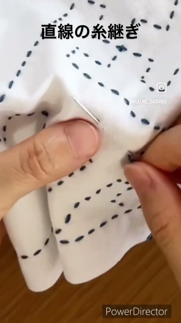 ⚫︎2枚仕立て→模様刺し→刺し子糸使用→直線での糸継ぎ