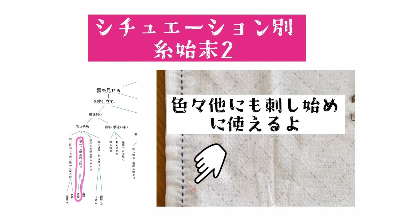 この体系と、シチュエーション別の糸始末をまとめた動画を制作いたしました。