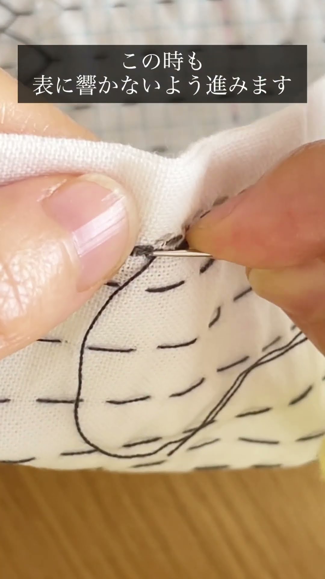 ⚫︎2枚仕立て→一目刺しのくぐり刺しの刺しおわり