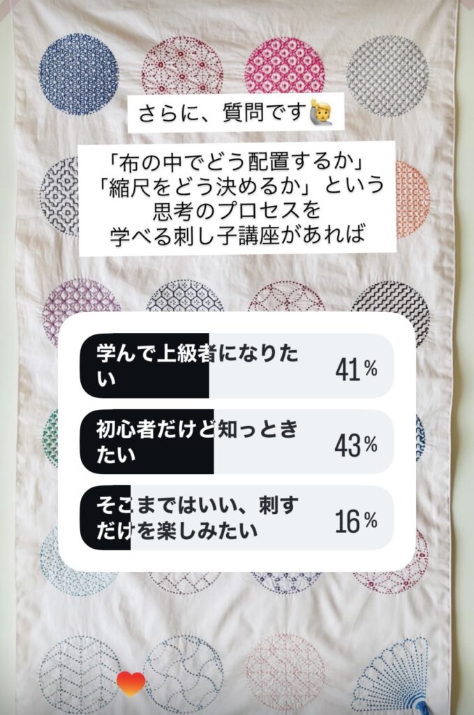 実は今度、図案の考え方をテーマにした刺し子講座を予定しています。詳細はまた改めてお知らせしますね。